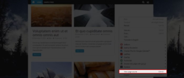Кликните правой кнопкой мыши по странице интересующего сайта и выберите пункт «Просмотр исходного кода страницы».